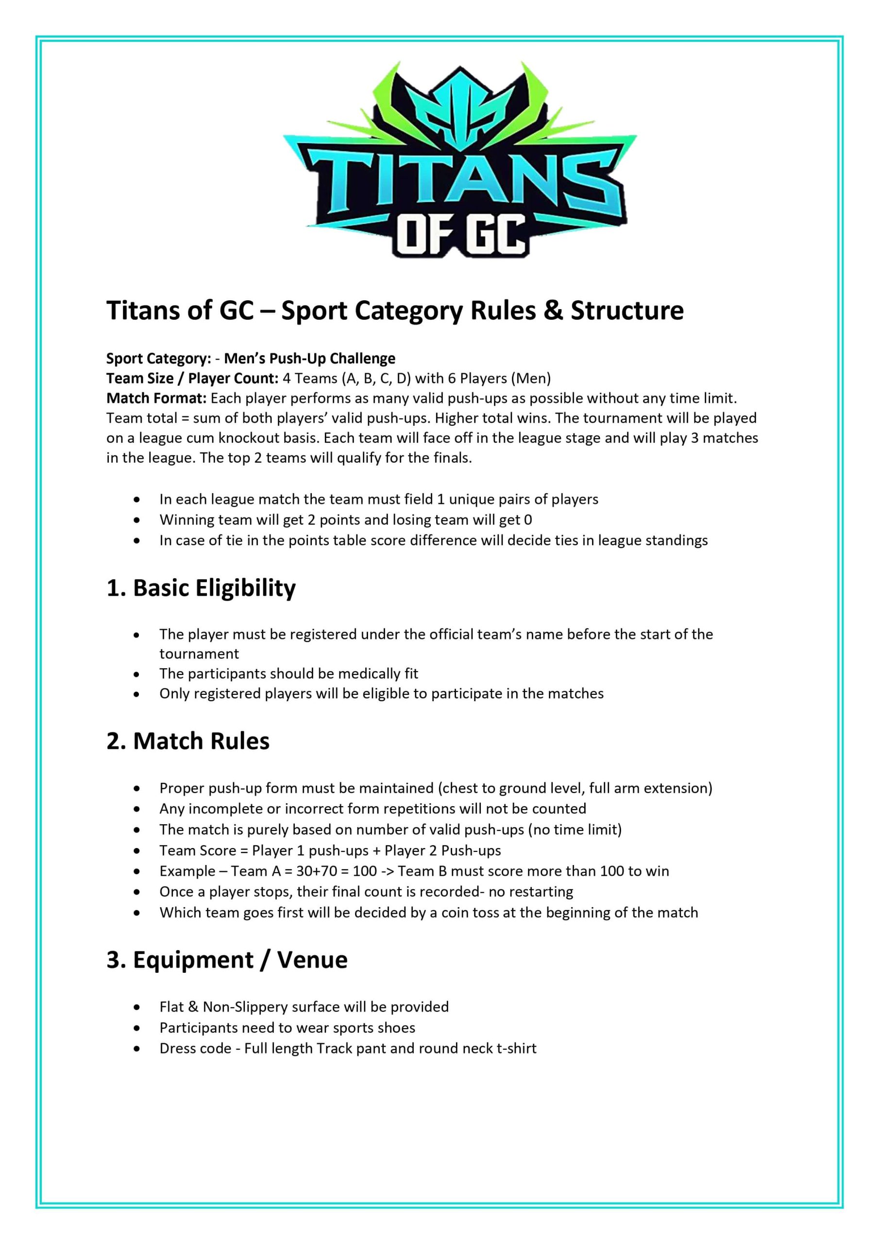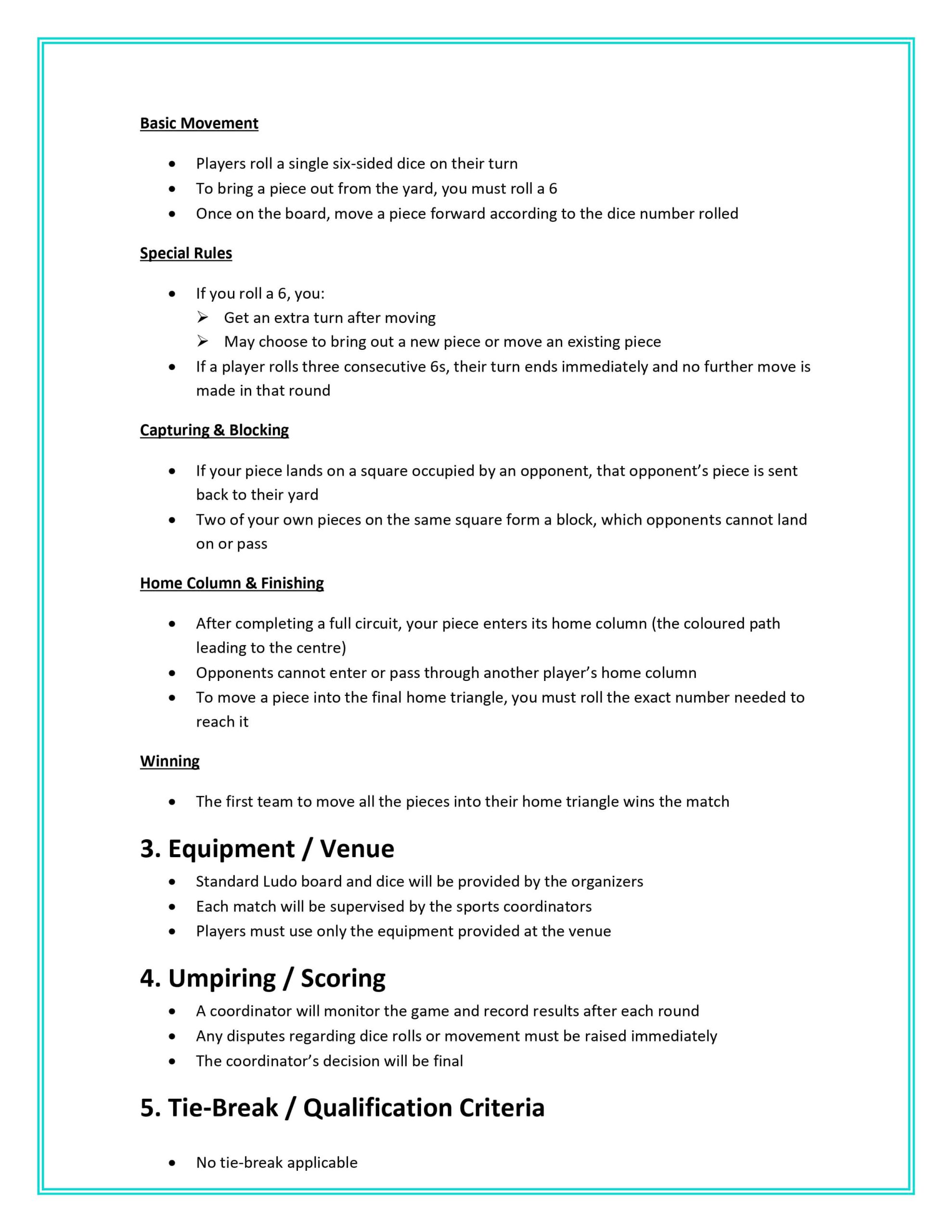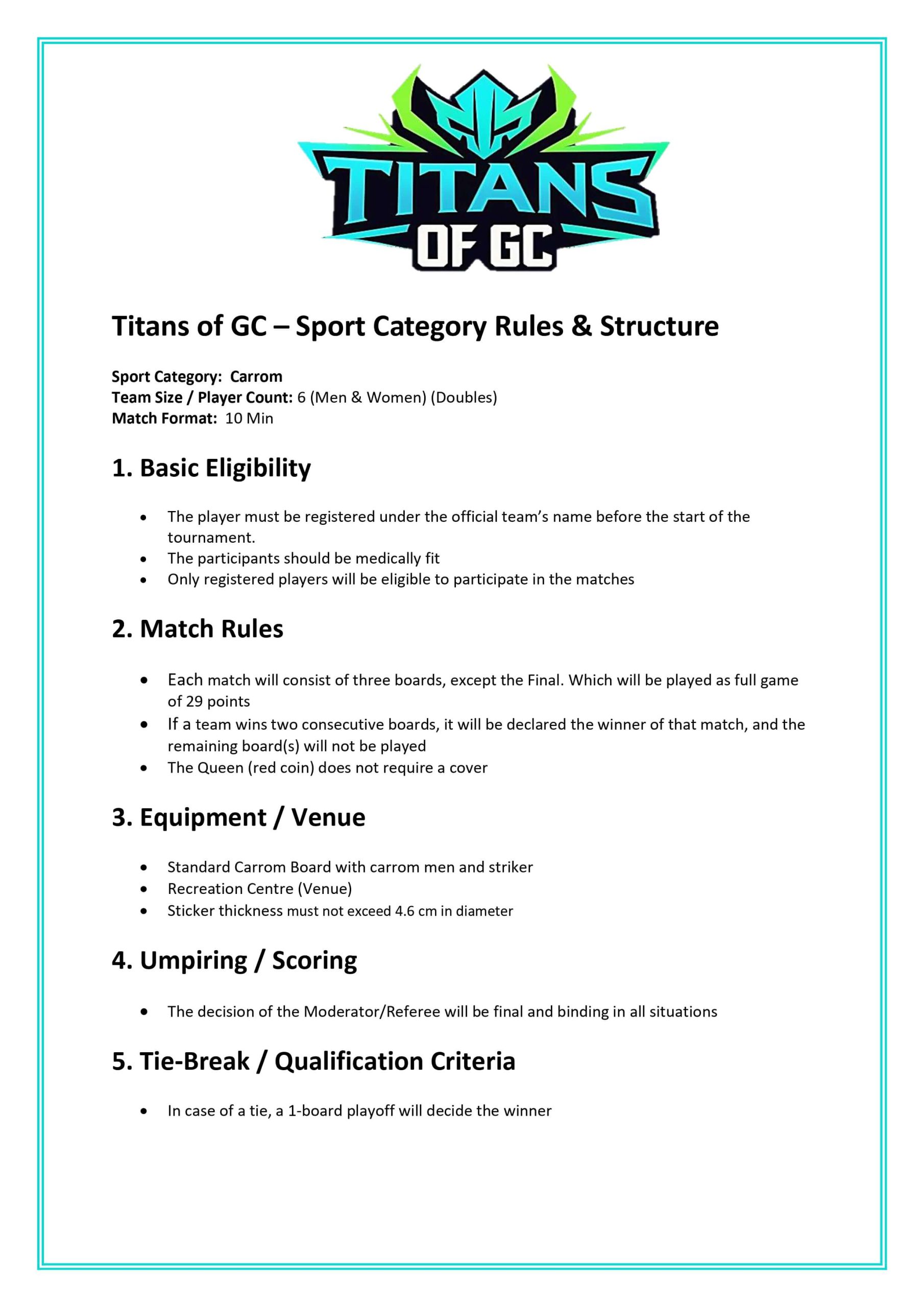 Rules Badminton Basketball Carrom Chess Dart Foosball/Table Football Ludo (Women) Men's Cricket Men's Push-Up Rules